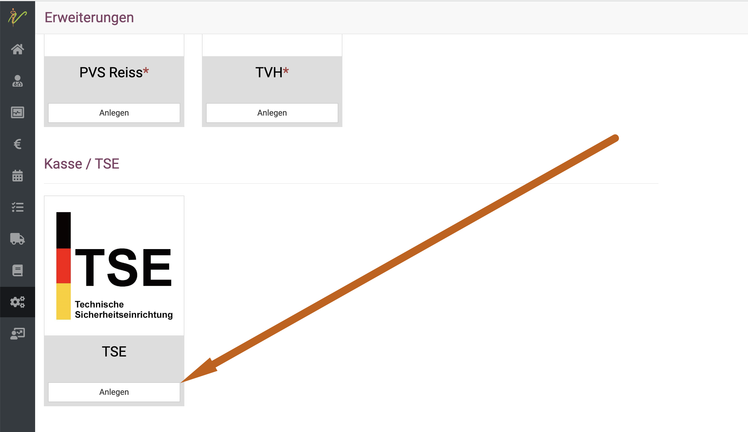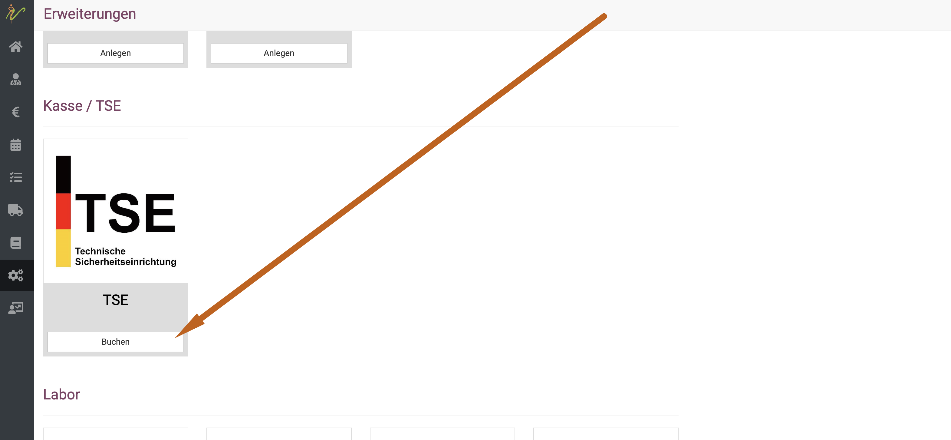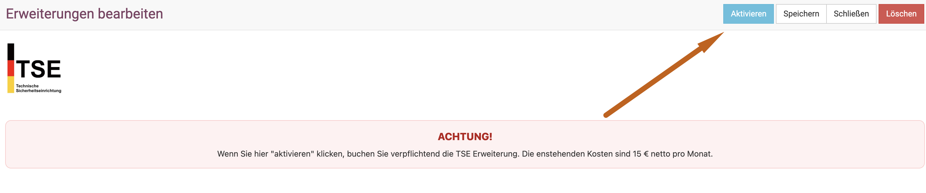 die Möglichkeit, für 15,00 Euro monatlich eine TSE-Schnittstelle hinzuzubuchen.